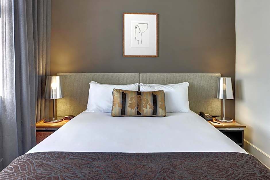 Featuring a contemporary design, this 54 square yard Deluxe Suite is located in the refurbished Tower Wing. There is an open-plan living area and a separate bedroom. Many have views looking across to the Waitemata Harbor. Full kitchen and laundry facilities are provided.